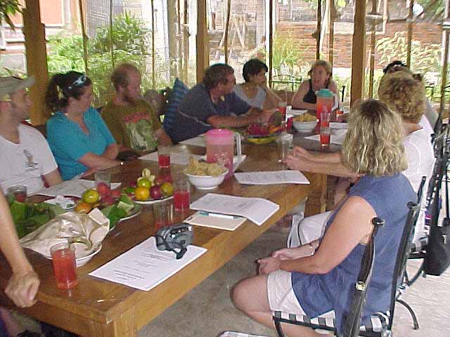 In the courtyard of the Honeymoon Bakery Guesthouse, the class begins with