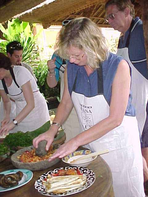 All recipies were made from scratch. Here Jaunita grinds spices and chilies