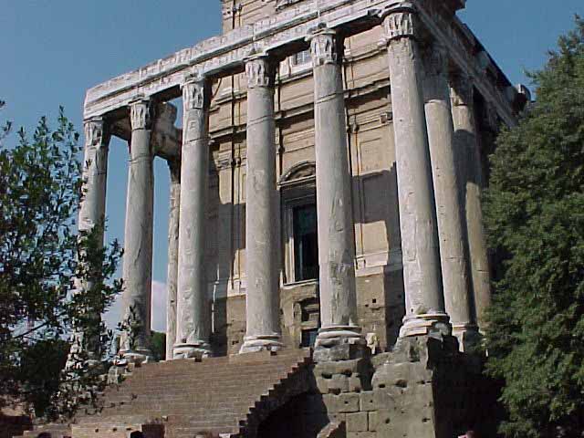 Temple of Antoninus and Faustina. The bottom of the columns used to be