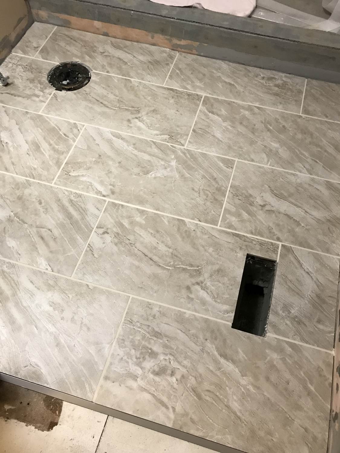 Grout is in. We used completely waterproof grout. Expensive, but it never has to be treated to retain its waterproof quality.