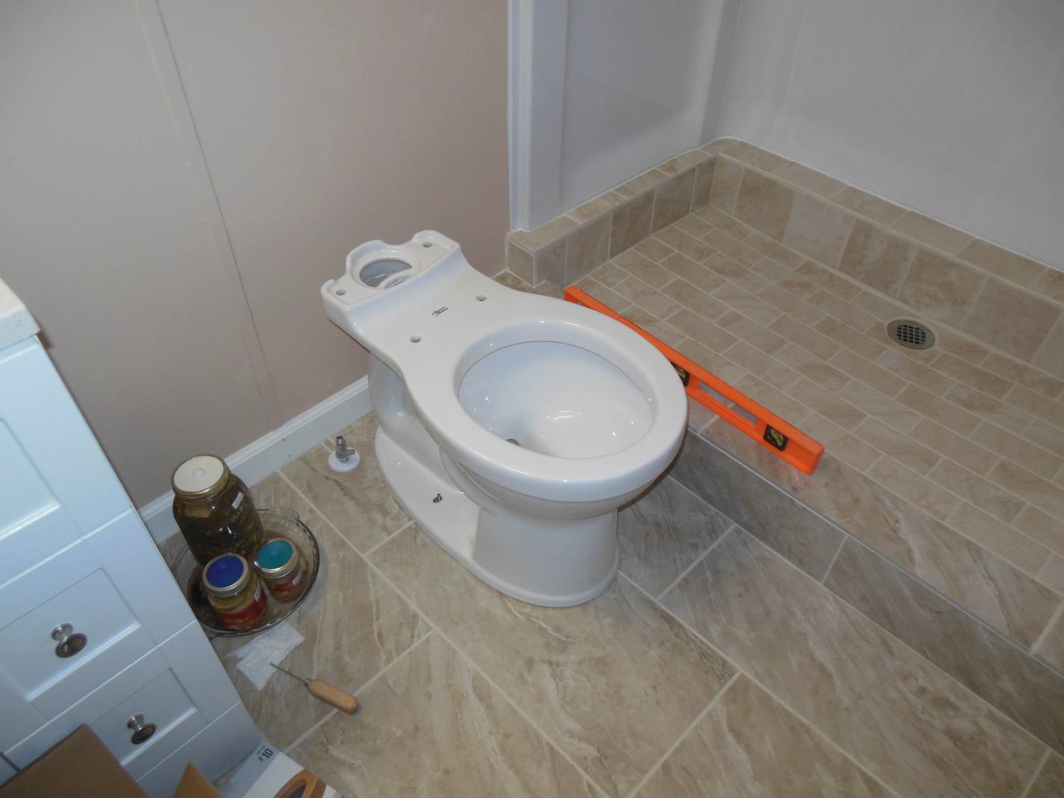 Brand new toilet going in. And look... more fermenting!