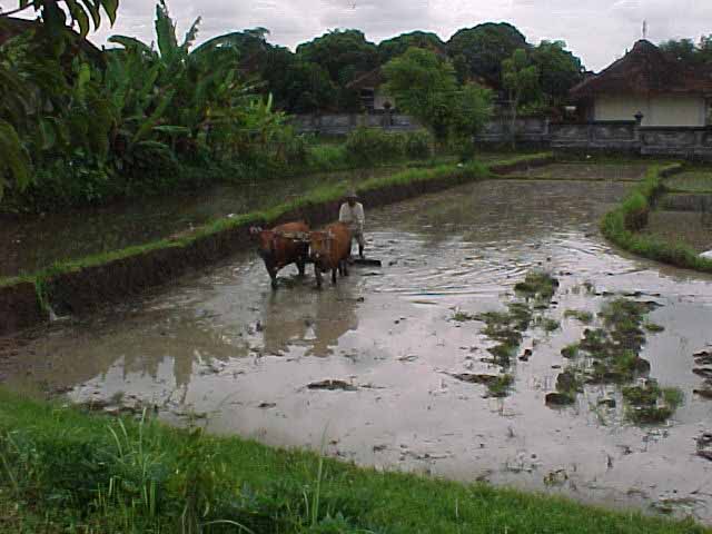 agricultural equipment in Bali! This photo is the first phase of rice production. The traditional rice makes two crops a year. Now there's a new inferior rice that makes three crops a year and doesn't have to be hand planted BUT it doesn't taste as good and has to be sprayed with pesticide! There is also a black rice for making my favorite dessert: Black rice pudding! And it is also served as a porridge in the morning. |