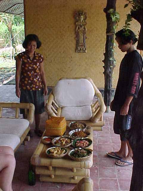 Just one of the delicious dinners. Rice in the covered basket.Six