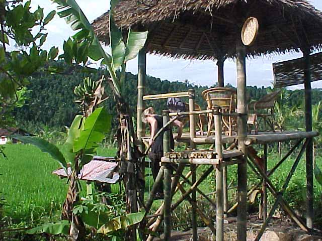 Jaunita is coming down from the new "Ranggon" at John and Joyce's Munduk