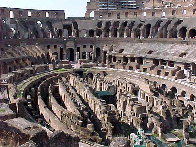 There are dozens of cats now living here! There used to be a wooden floor, which , when covered with sand and flooded, could be used for mock naval battles! In AD 80, they held the first "games" here and 9000 wild animals were killed. 55,000 people could watch! |