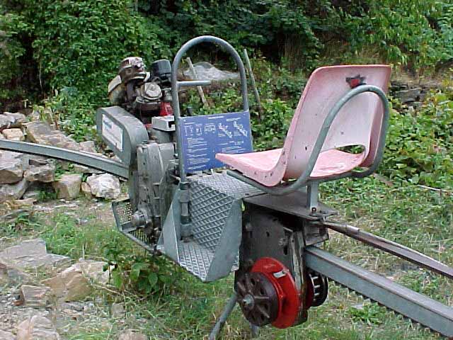 This tinly private "monorail" is for hauling up and down the steep hillsides. It can pull three or four carts loaded with grapes, which also ride on the rail!