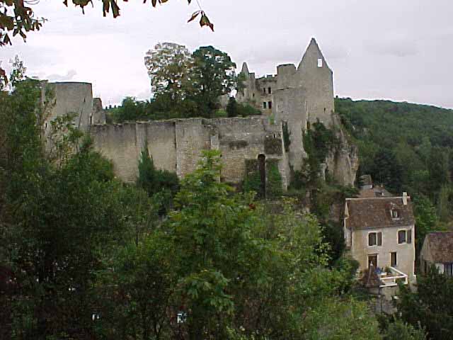 These ruins are on top of a high cliff above the Anglin River, well defended. They can be seen from the south as you approach the village from a half mile away.