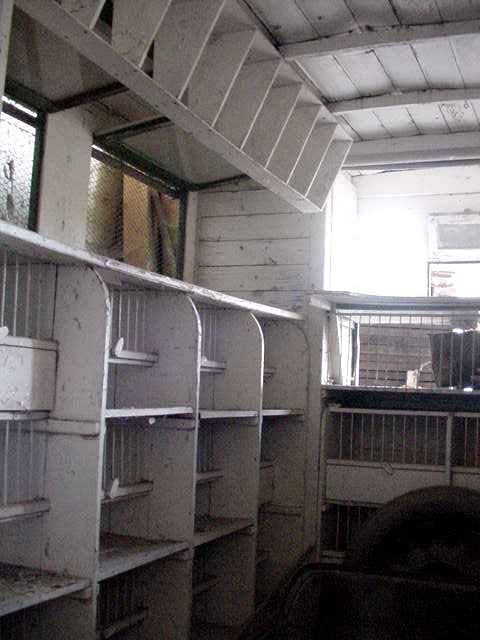 Interior of the US Army Carrier Pigeon Wagon. Jaunita was given a pad of