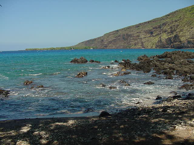 Looking across Kealakakua Bay to the Captain Cook Memorial. It's a small