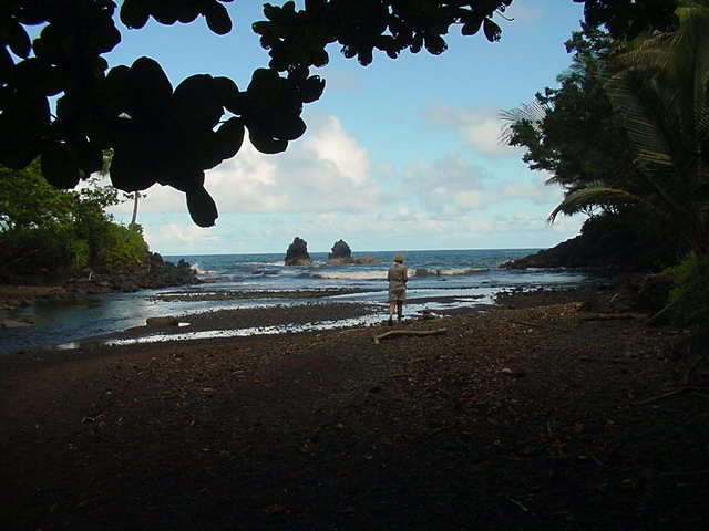 Looking toward the sea from the last photo with cascading falls. Jaunita is looking for interesting rocks.