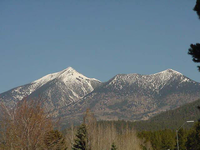 Snow covered San Francisco Peaks behind Flagstaff, Arizona.