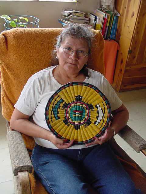 Doris of Hotevilla village, shows off one of her wicker turtle plaques.