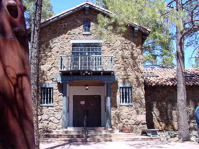 Front of the Museum of Northern Arizona in the pine forest in the hills