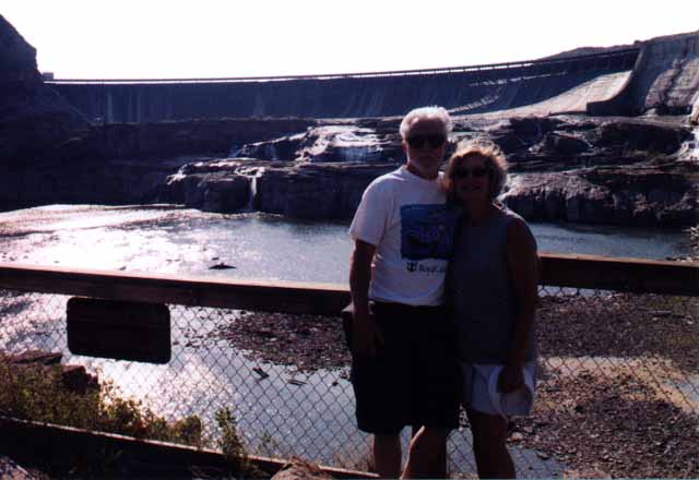 except for that big concrete dam at the top of the falls. Actually, during a good portion of the year, there is enough water in the river that these falls are spectacular looking. Unfortunately, when we came through, Montana was heading for record drought conditions, and every drop of water was being channelled through the powerhouse, out of the view of this picture. When there is more water flowing, a lot is sent over the spillways, and onto the falls. |